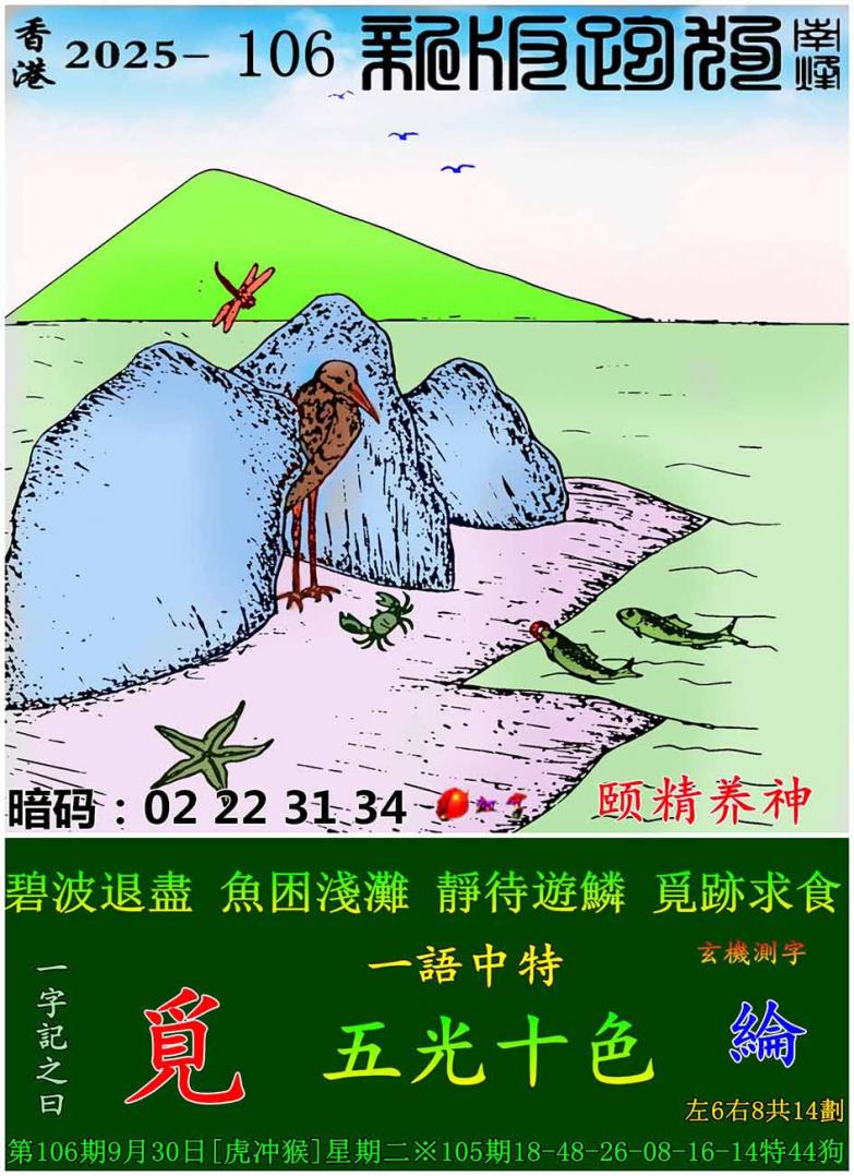 106期新版跑狗一字記之曰:【覓】 玄機測字:《綸》 一語中特:五光十色