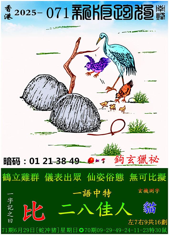 071期新版跑狗一字記之曰:【比】 玄機測字:《貓》 一語中特:二八佳人