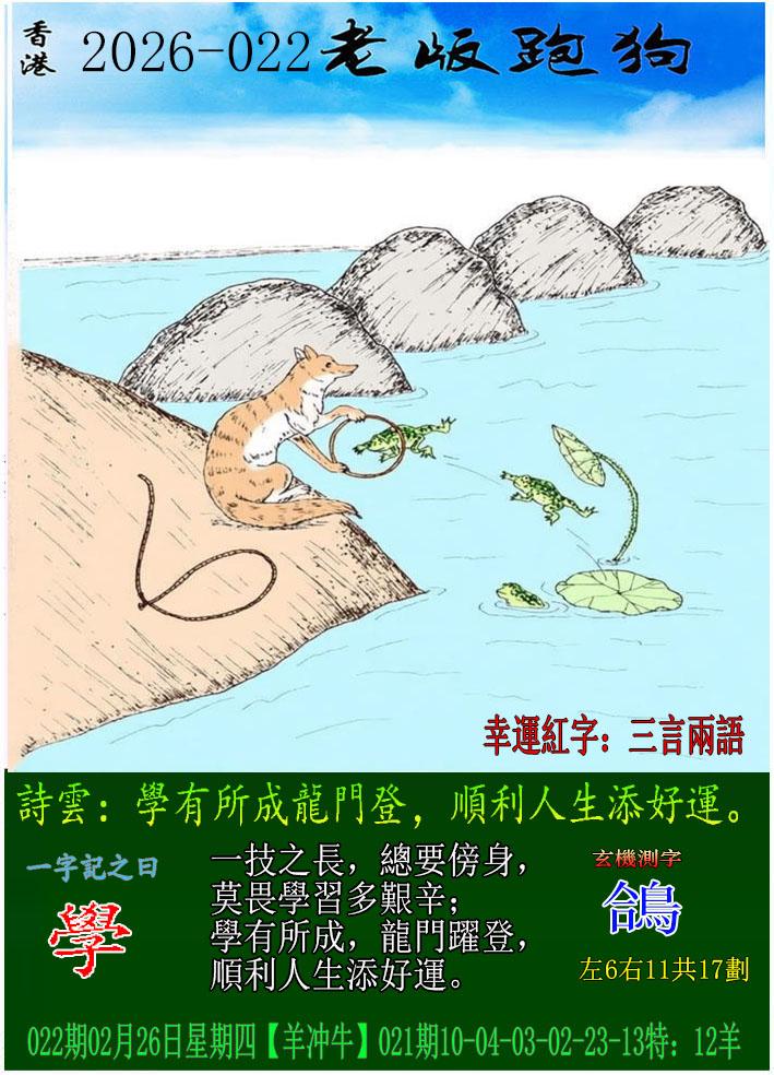 022期老版跑狗一字記之曰:【學】 詩雲:學有所成龍門登,順利人生添好運。