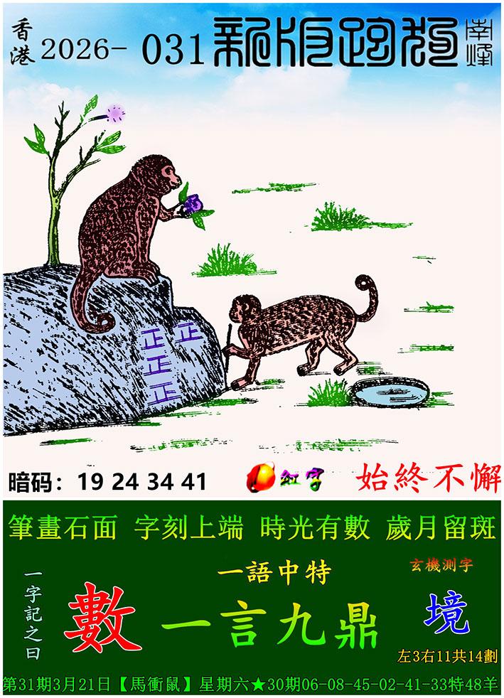 031期新版跑狗一字記之曰:【數】 玄機測字:《境》 一語中特:一言九鼎