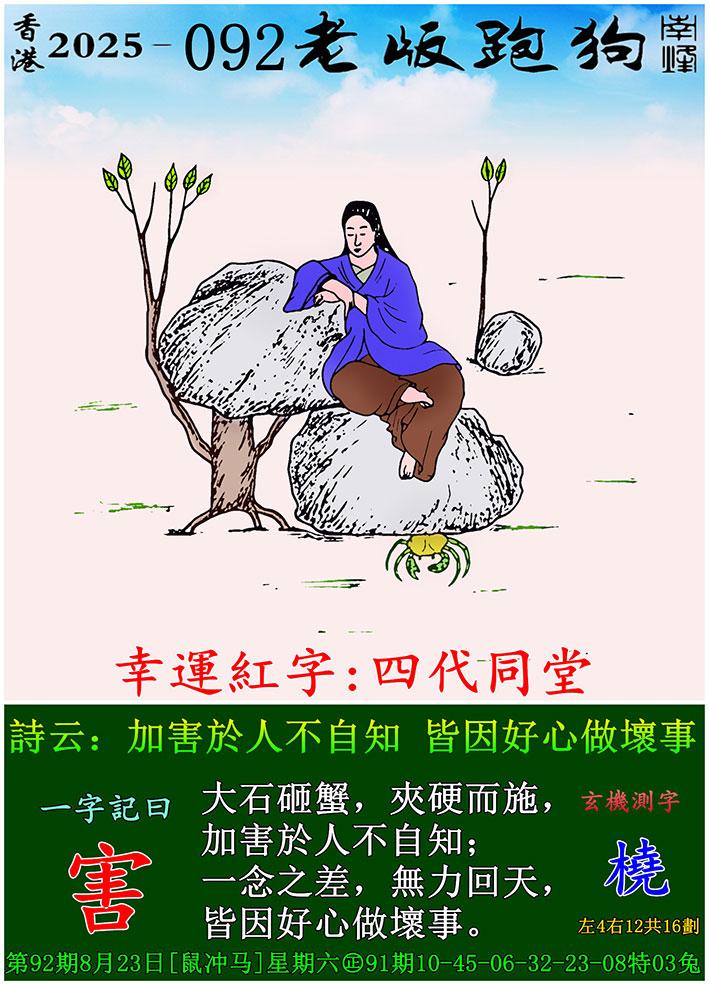 092期老版跑狗一字記之曰:【害】