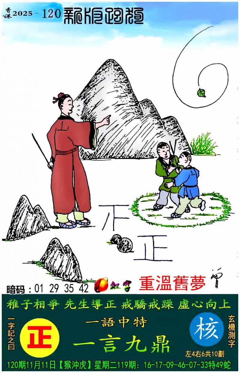 120期新版跑狗一字記之曰:【正】 玄機測字:《核》 一語中特:一言九鼎