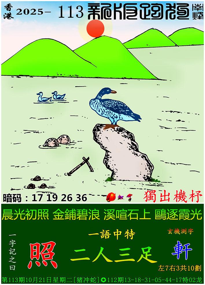 113期新版跑狗一字記之曰:【照】 玄機測字:《軒》 一語中特:二人三足