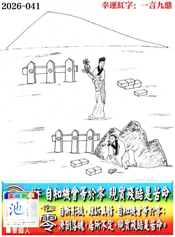 041期老版跑狗一字記之曰:【零】 詩雲:自知機會等於零,現實殘酷是苦命。