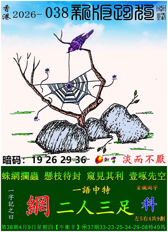 038期新版跑狗一字記之曰:【網】 玄機測字:《科》 一語中特:二人三足